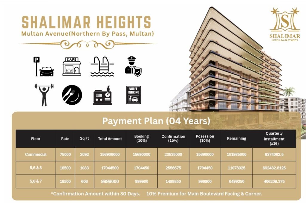 Shalimar Heights offers long-term value, prime commercial visibility, high rental returns, and luxury residential living — making it one of Multan’s strongest investment opportunities.